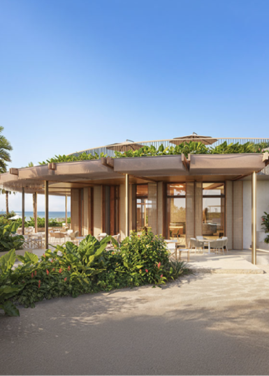 Residents can enjoy a wide array of outdoor activities, from the padel court and outdoor co-working areas to an infinity pool with jacuzzi overlooking the beach. The community also includes outdoor dining terraces, fitness zones, and children’s play areas, creating an inclusive environment for every age. Beachfront spaces such as volleyball courts, event lawns, sunken seating, deck lounges, and an open-air beach cinema bring social life directly to the shore.